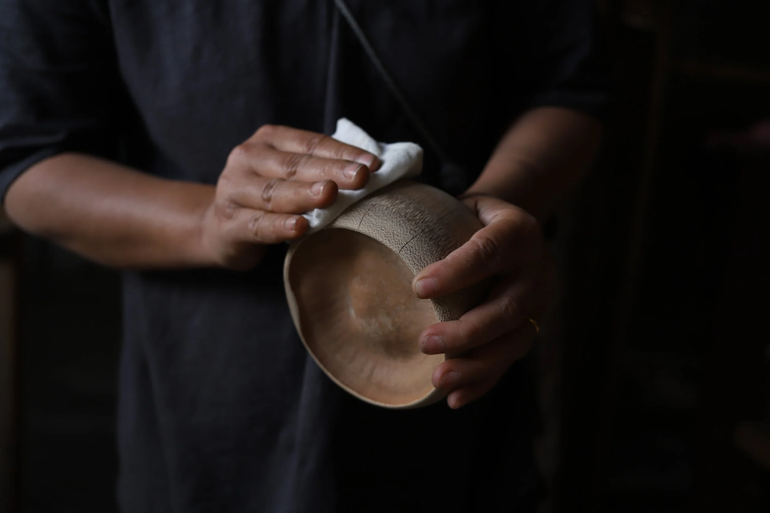 Over time, bamboo may dry out, become brittle, or develop small chips. To keep it nourished and resilient, apply a food-safe oil every few months. I recommend walnut oil, a fast-drying option that works beautifully with bamboo. Using a clean muslin cloth, gently apply the oil and allow a few days for curing. Once fully absorbed, your piece will be refreshed and ready for use.